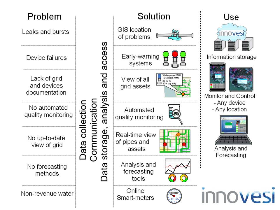 Lack of information about the status and condition of water grid / network is the biggest problem in the water management industry everywhere. Most maintenance and repair calls are unnecessary, because up-to-date doesn't exist or is not available in the field. It is the end-users that inform about water interruptions, disturbances, leakages, etc. and not the other way round. Inadequate water network refurbishing budgets are allocated inefficiently by looking at the build-date and not at the actual state or status of the network. This increases operational costs, unpredictable break-downs and end-customer dissatisfaction.